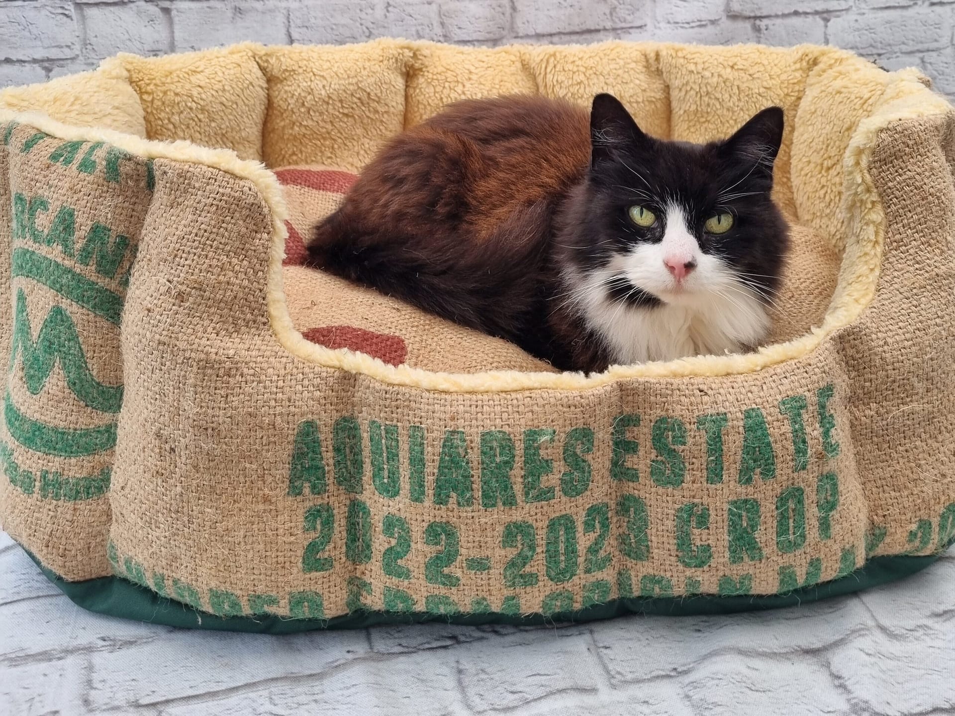 Spoil your pet with this unique handmade pet bed. Turning a good old coffee sack into a cosy bed for your furry friend. Soft and comfy, this bed will become a perfect spot for your pet where they can relax or sleep the night away!